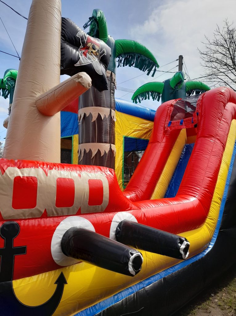 But that’s not all! Our Pirate Ship Bouncy Castle Combo also comes equipped with a built-in basketball net. Hoist the mainsail, channel your inner pirate skills, and shoot hoops like a true captain. It’s a chance for young adventurers to showcase their basketball prowess and partake in thrilling competitions.