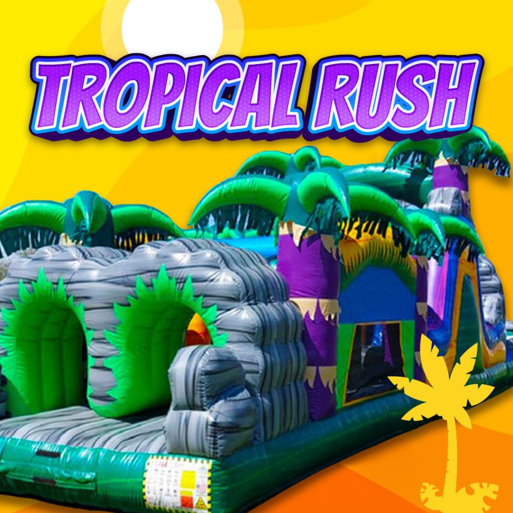 Don’t miss out on this opportunity to bring the wow factor to your event. Rent our Tropical Rush Obstacle Course now and watch as your guests are captivated by the challenge, camaraderie, and sheer excitement of this inflatable sensation. Create a tropical adventure right in your own backyard and make memories that will last a lifetime. Get ready to feel the rush and conquer the obstacles like a true champion!